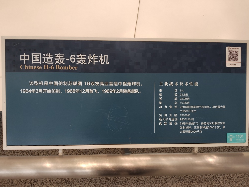 轰-6轰炸机(以下简称轰-6)是在20世纪60年代初,中国参照苏联的图16轰炸机自行研制、生产的战略轰炸机,是我空军服役时间最长的机种之一。六十多年过去了,轰-6在不断的改进、生产,型号可以说是不计其数。有网友调侃说,再过几年英文字母都不够六爷用的了。但是,轰-6这个型号只有两架。中国第一颗氢弹,就是由展厅中的这型轰-6运载到空中进行投弹实验的。