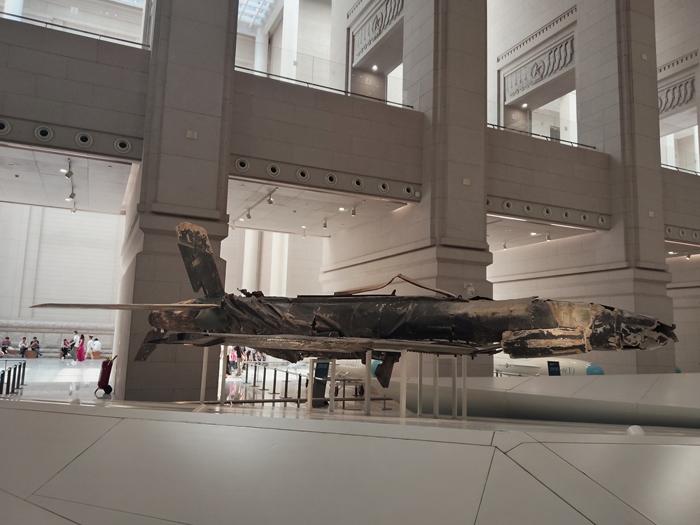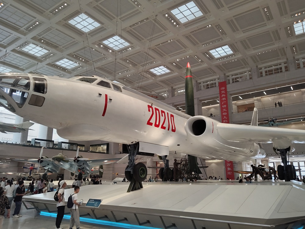 编号为20210的轰炸机,是轰-6轰炸机,陈列在军博一层展厅一进大门的位置。轰-6轰炸机,自带威严,自带气场,自己就能说明自己举足轻重的重要地位。2024年国防部中外媒体新春招待会,就是在轰-6轰炸机前举行的。让整个招待会充满了战斗氛围,发出了中国军队的强音。