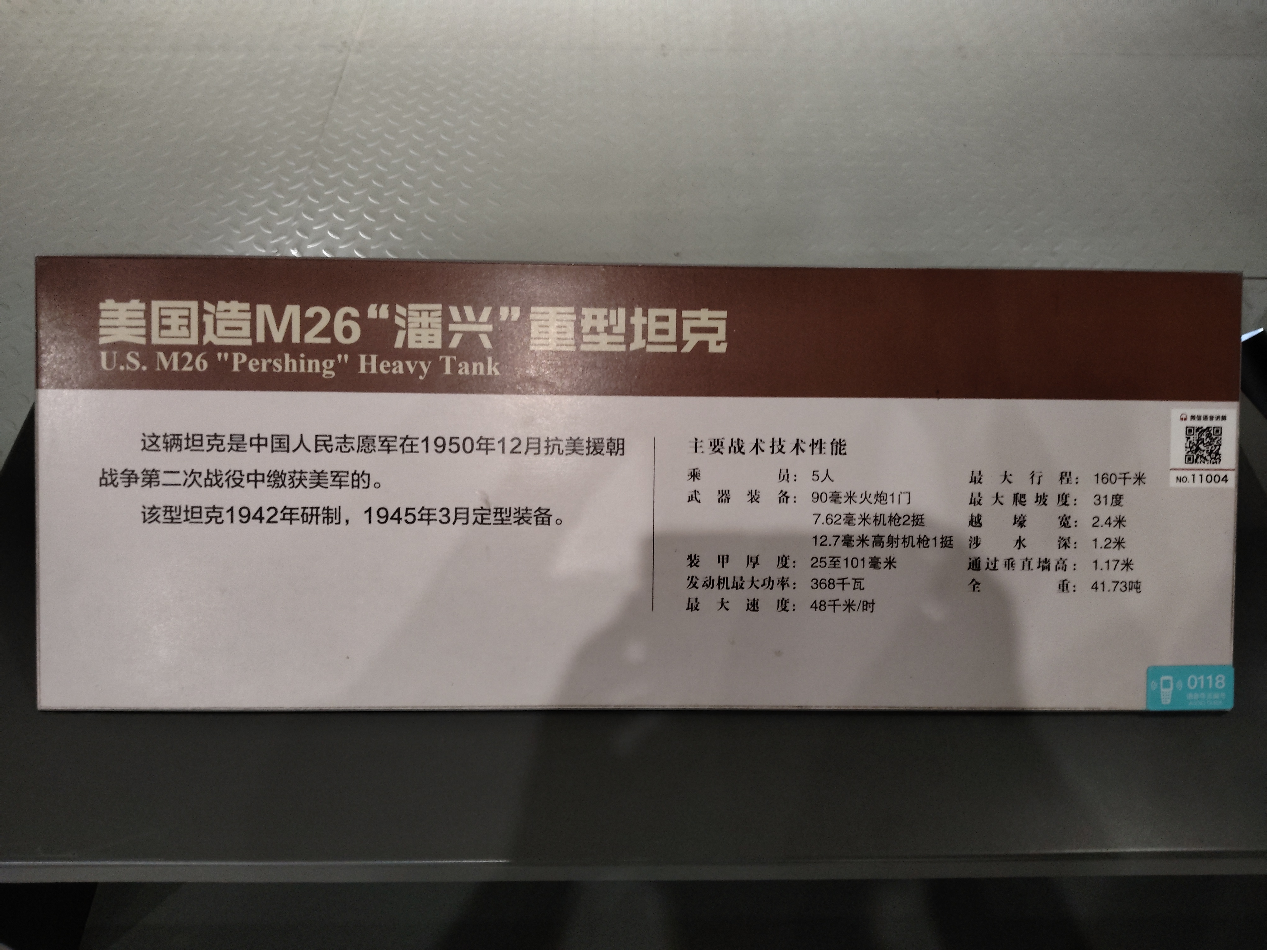 这辆坦克是中国人民志愿军在1950年12月抗美援朝战争第二次战役中缴获美军的。